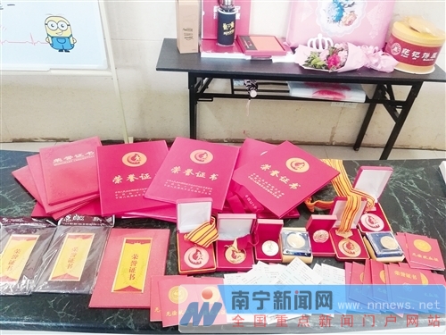 接过南宁中心血站献血办主任蒋文和捐血屋工作人员送上的鲜花和蛋糕,韦沛常难以抑制住激动的心情。按照规定,无偿献血者年龄不得超过60周岁。献血近20年的他,收集了厚厚的一堆献血证,也收获了南宁市和国家级的各种献血荣誉。