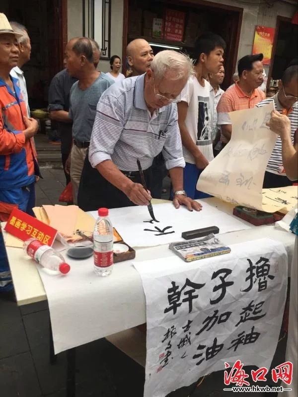 21日上午,琼山区司法局、海南省爱心社工志愿者协会理疗队、琼台师范志愿服务队等多个志愿服务队以集市形式摆摊设点,现场提供免费理发、免费艾灸、中医推拿、书画交流、手工作品义卖、手工免费学习以及法律宣传服务。同时,琼山区志愿者自编自演的快板舞、吉他独奏等节目,获得了市民的好评。