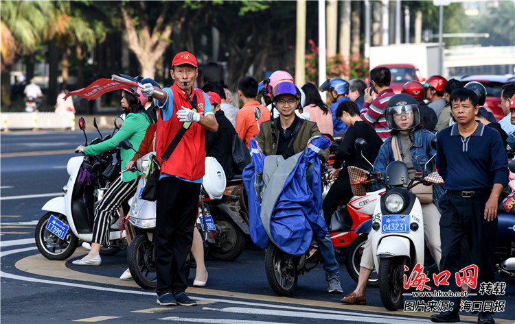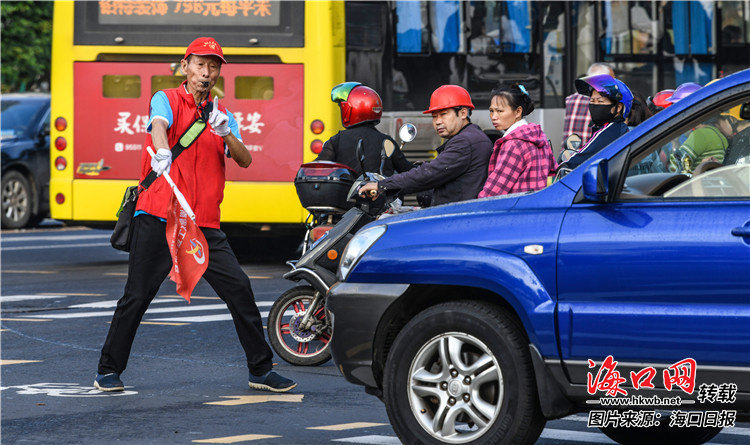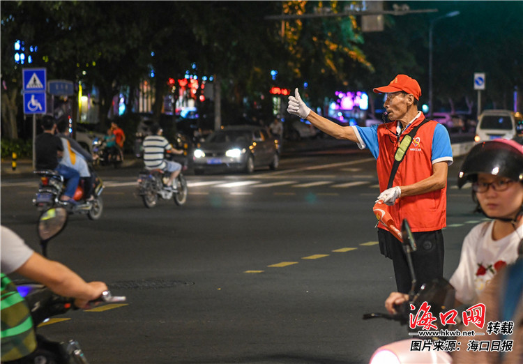 原标题:十字路口的“动情指挥家” 记者苏弼坤文/图 “红灯停、绿灯行,宁停三分、不抢一秒……”每天早晚高峰时,这句文明交通宣传语总能准时地在海府路与海府一横路交叉口响起,途经此处的行人也总能被一位“动情”的交通志愿者所吸引。 对于未礼让他人的车辆路庆会立即挺身而出,将对方拦停。 这位被称为“动情指挥家”的志愿者名叫路庆会,今年已经68岁,每天早上他迎着朝霞出发,晚上披着星辰回家,为的就是服务早高峰和晚高峰时间出行的汽车与行人。在岗期间,他不停地挥舞着旗子、做各种交通手势、用力吹着哨子、大声复述着他自己总结的交通宣传语。天天如此的路庆会用手中的这面红旗竖起了海口街头的文明风尚,也成为海口街头一道独特的风景。 对于礼让他人的车辆路庆会都会伸出大拇指。 “我家人很支持我的工作,她总是提醒我,站在交通岗上代表的不仅仅是我个人,要时刻注意言行。每天早上她都会早早地给我做好饭,让我精神满满地站好每一班岗。”路庆会对妻子给予的支持备感欣慰。 每天早上5时30分,吃完早餐的路庆会便从家里骑上自行车前往海南大学东门的公交站点,从此处坐公交车前往执勤点。7时许,到达执勤地点的路庆会整理完着装很快就进入工作状态。“动作一定要干脆利落,这样才能有精气神,才对得起身上的红马甲。”路庆会说。 值勤到晚上7点多的路庆会坐公交车回家。 本是军人出身的路庆会对自己要求很高,除了标准的交通手势,他还会用一些言简意赅的文明交通宣传语来感化路人。而让众多行人印象深刻的还有路庆会那极其认真负责的指挥,见到礼让行人的机动车司机,他会做个标准的立正,并向对方伸出大拇指;见到闯红灯的行人或未礼让的车辆,他会立即挺身而出,手中红旗用力一抖,将对方拦停。 “他天天如此,潜移默化影响了很多人。”家住海府路与海府一横路交叉口华运大厦的符先生说,他每天上下班都要经过这个路口,途经此处的车辆与行人都会配合路庆会的指挥,所以这个路口很少出现拥堵现象。路庆会用他自己的语言和行动提升着城市交通文明的高度,让更多人享受交通文明带来的好处。 |